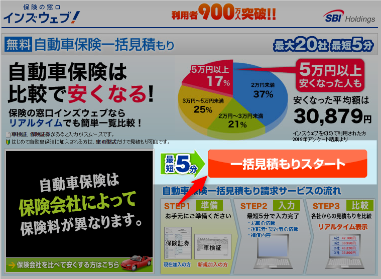 たった5分で自動車保険を3万円以上節約できる!?